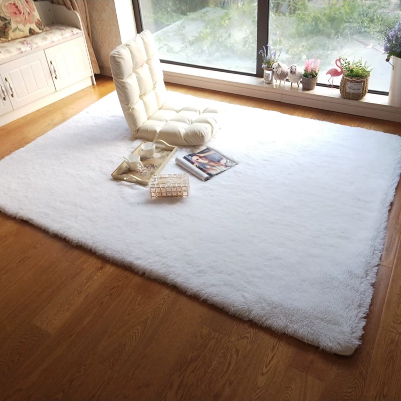 Trắng mịn tóc dài phòng khách bàn cà phê thảm xám kaki phòng ngủ đầy đủ cửa hàng nghiên cứu cửa sổ bay có thể được tùy chỉnh - Thảm