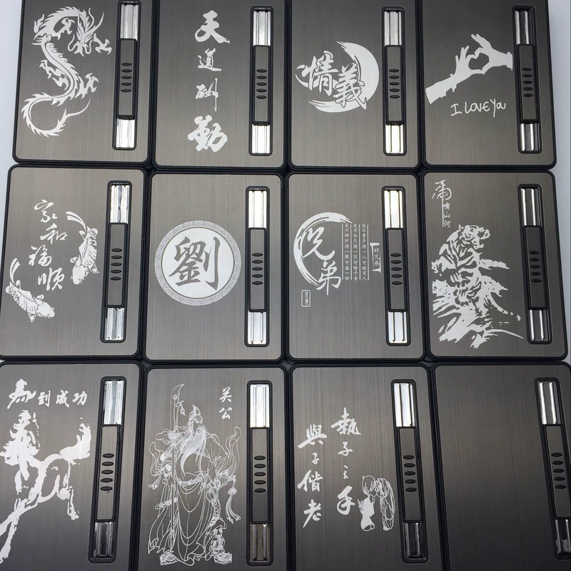 10 gậy tự động bom khói kim loại hộp thuốc lá đen chải hợp kim nhôm siêu mỏng với chữ thuốc lá nhẹ hơn gió - Bật lửa bật lửa plasma Bật lửa