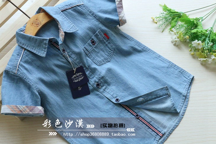 17 năm hè cậu bé mới lớn cậu bé hoang dã vuông khâu bông mềm giặt áo sơ mi denim áo sơ mi bé trai mùa đông Áo sơ mi