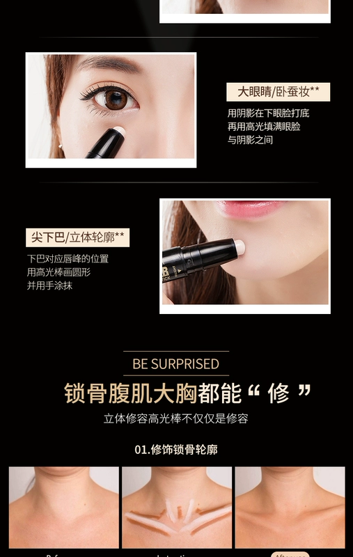 [2 Pack] Que sửa chữa hai đầu làm nổi bật thanh che khuyết điểm làm sáng bóng che khuyết điểm V mặt mũi phấn bột nằm tằm bút kem kem highlight Bóng