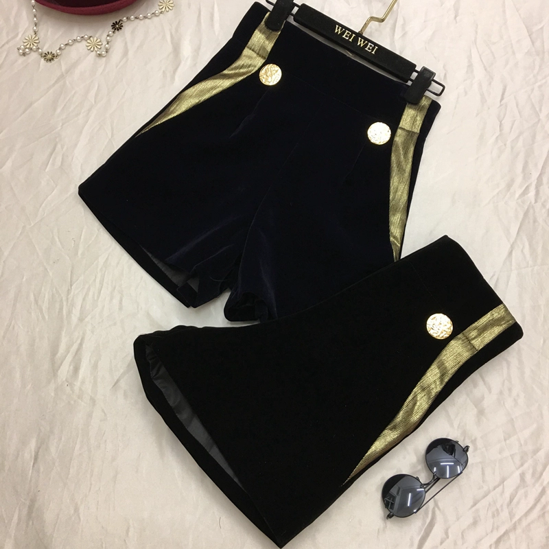 2018 đầu thu mới châu Âu và Mỹ mới phụ nữ cao eo đối xứng sọc chính tả trang trí khóa vàng quần short hoang dã quần âu quần đùi jean nữ Quần short