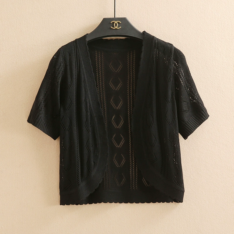 2018 hoang dã áo len đoạn ngắn cardigan nhỏ nữ mùa hè ăn mặc mỏng vest bên ngoài ngắn tay rỗng kem chống nắng khăn choàng áo áo dạ nữ dáng lỡ Áo khoác ngắn