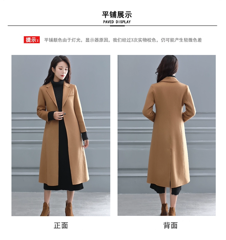 2018 mới đôi phải đối mặt với nhung áo của phụ nữ phần dài cashmere Slim off mùa 100% len cao cấp áo len áo khoác phao nữ