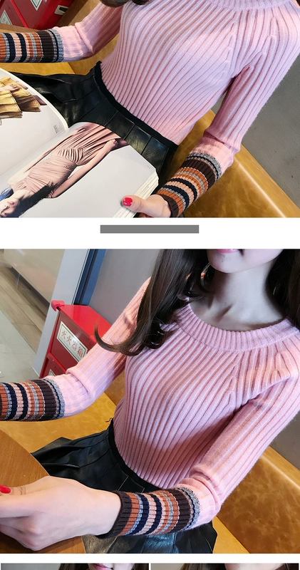2018 mới thu đông phiên bản Hàn Quốc của áo cổ tròn phần ngắn tay áo len dài tay áo len nữ dày áo sơ mi nữ áo sơ mi nữ áo khoác len mỏng nữ Áo len