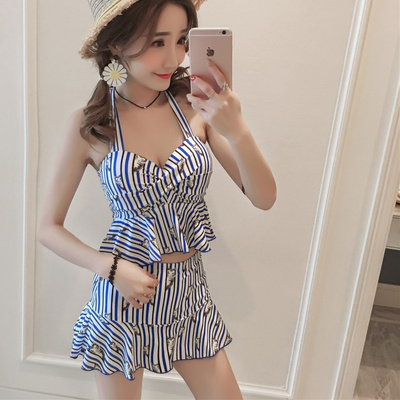 2019 áo tắm nữ nóng bỏng kiểu váy xẻ che bụng mỏng eo cao ngực nhỏ tụ tập nước hoa nhỏ Hàn Quốc gợi cảm bong bóng - Bộ đồ bơi hai mảnh đồ bơi 2 mảnh cổ yếm Bộ đồ bơi hai mảnh