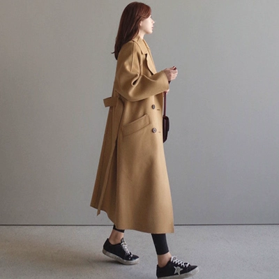 2019 phổ biến áo khoác len Hepburn nữ áo choàng dài mùa thu và mùa đông áo len ren giải phóng mặt bằng sinh viên Hàn Quốc - Accentuated eo áo áo dạ nữ dáng dài cao cấp Accentuated eo áo