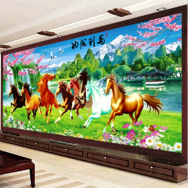3d thêu đơn giản in khâu Tám Ngựa thành công bán mới chỉ tám con ngựa thêu những con chiến mã ngựa phòng khách - Công cụ & phụ kiện Cross-stitch tranh thêu chữ thập giá rẻ Công cụ & phụ kiện Cross-stitch