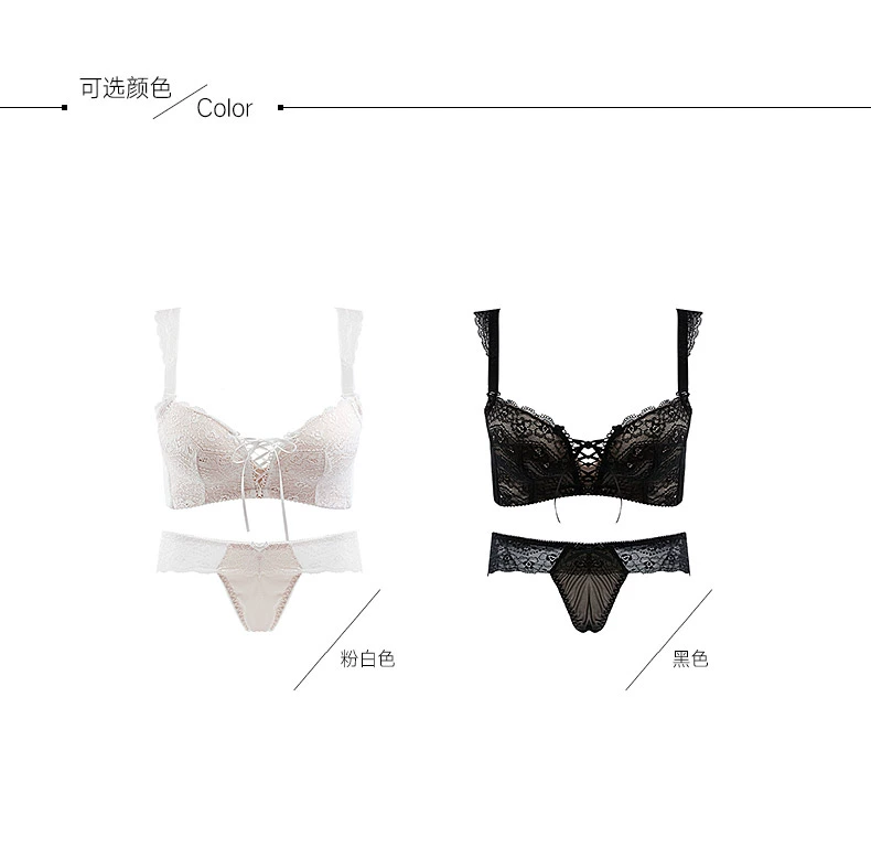 Silk Shake Ngọt Ren Sexy Ít Bay Vai Không Có Thép Vòng Đồ Lót Vú Nhỏ Dày Dây Đeo Thu Thập Bra Set Bộ đồ lót