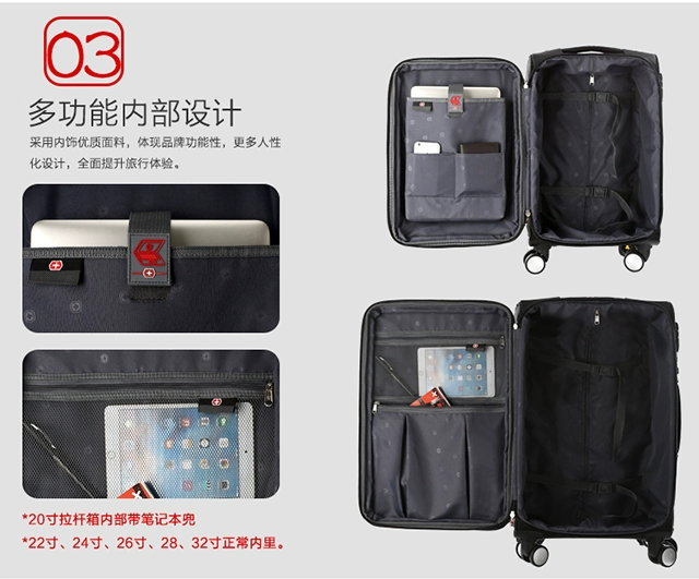 Thụy sĩ quân đội dao xe đẩy trường hợp lên máy bay oxford vải vali hộp mềm 24 inch 26 inch 32 inch caster hành lý sunny vali