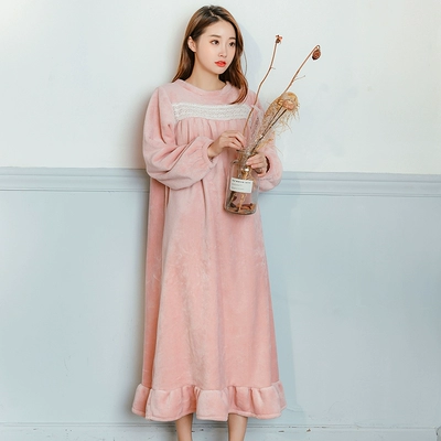Mùa thu và mùa đông dày đoạn dài flannel váy ngủ nữ dài tay ngọt ngào nhung nhung đồ ngủ nhà dịch vụ ấm áp áo ngủ đầm ngủ 2 dây