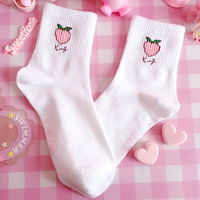 Trái cây dễ thương Nhật Bản Cô gái nhỏ tươi Vớ cotton Đổ mồ hôi Đại học Gió Gió Nữ 28 tất ống chân đá bóng