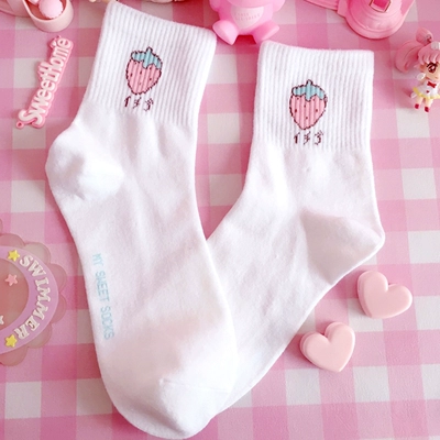Trái cây dễ thương Nhật Bản Cô gái nhỏ tươi Vớ cotton Đổ mồ hôi Đại học Gió Gió Nữ 28 tất ống chân đá bóng Bít tất nữ