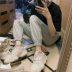 Quần thể thao nữ mùa thu đông 2018 mới buông lỏng chân chín điểm là hương Hồng Kông mỏng manh cộng với quần nhung dài chùm giản dị quần jean nữ lưng cao Quần Harem