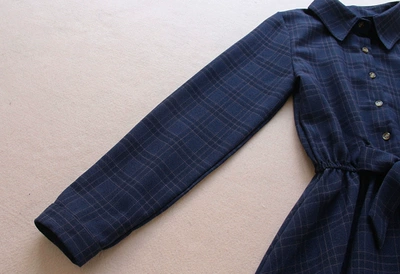 9420 mới mùa thu Hàn Quốc phiên bản của hoang dã dài tay đàn hồi eo Slim mỏng kẻ sọc cotton một từ ăn mặc váy liền thân chữ a A-Line Váy