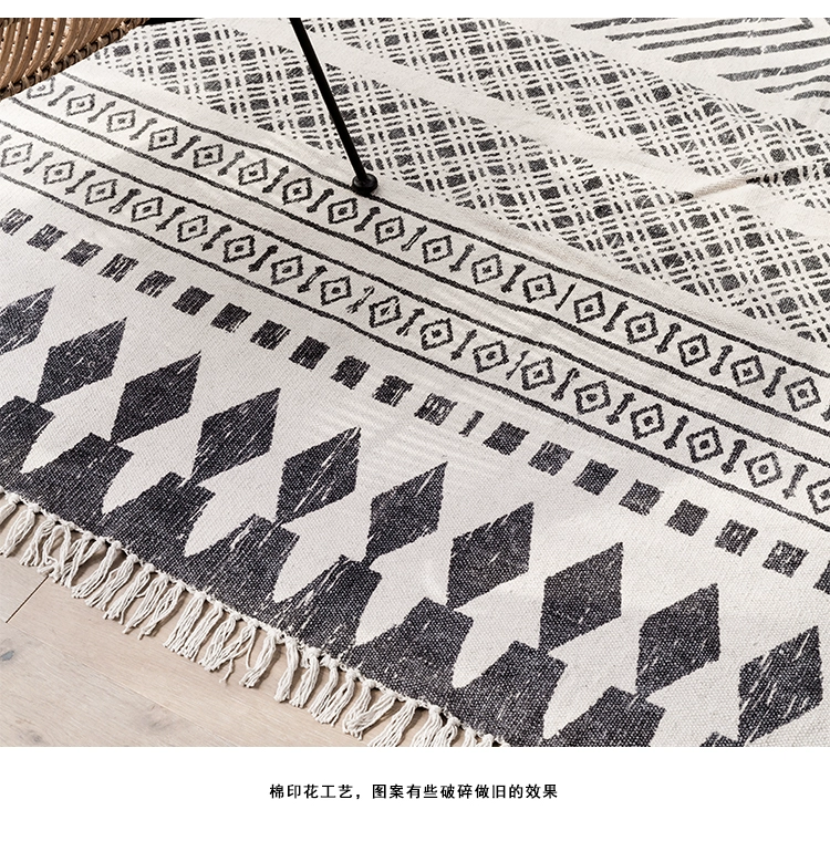 Ấn Độ nhập khẩu Bắc Âu đơn giản thảm màu đen và trắng bông hình học có thể giặt tấm thảm mỏng thảm - Thảm Thảm