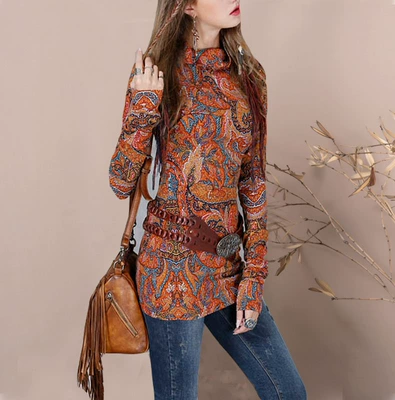 Áo dài mùa hè 2019 kem bay mùa thu và mùa xuân của phụ nữ theo phong cách dân tộc retro in áo thun mỏng họa tiết hoang dã - Cộng với kích thước quần áo quần đũi nữ Cộng với kích thước quần áo