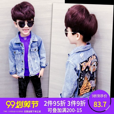 Áo khoác bé trai denim 2019 phiên bản Hàn Quốc mới của bộ đồ thủy triều mùa xuân và mùa thu trẻ em mặc áo khoác nam mùa thu nam - Áo khoác áo phao trẻ em mùa đông Áo khoác