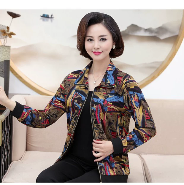 Áo khoác cho mẹ mùa thu ngắn 40-65 tuổi áo rộng kích cỡ áo khoác mùa xuân và áo sơ mi đôi mùa thu sử dụng quần áo nữ trung niên áo kiểu tuổi 40 Phụ nữ cao cấp
