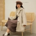 Áo khoác len kẻ sọc nữ sinh viên Hàn Quốc phiên bản 2018 thu đông mới mỏng vừa vặn, hoang dã ao khoac Trung bình và dài Coat