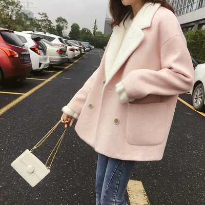 Áo khoác len nữ màu hồng mùa đông 2018 phiên bản Hàn Quốc mới của áo len dày ngọt ngào phổ biến áo khoác lông ngắn áo dạ nữ dài Áo Hàn Quốc