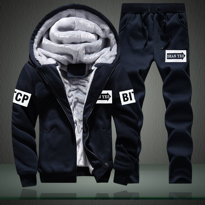 Áo len nam phù hợp với mùa thu đông cộng với nhung dày Slim phiên bản Hàn Quốc của chàng sinh viên đẹp trai ấm áp áo trùm đầu hai mảnh quần jean nam đẹp