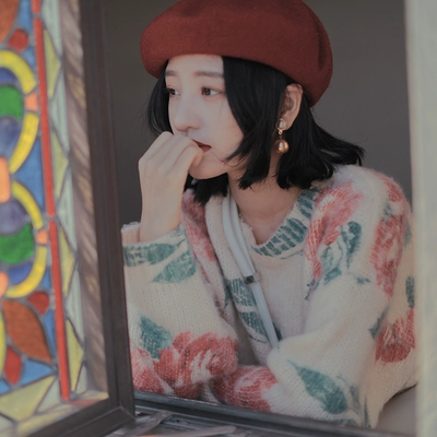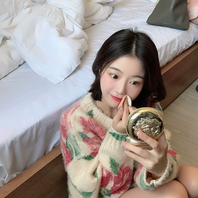 Áo len nữ Daxi tự làm 2018 mùa đông mới retro cổ tròn in áo len dệt kim mềm mại áo nữ