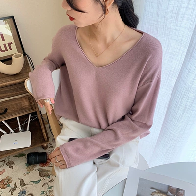Áo len nữ mùa thu Hàn Quốc Dongdaemun 2019 buông lơi gió lười cổ chữ V len dệt kim áo len tím - Đan Cardigan áo khoác len nữ Đan Cardigan