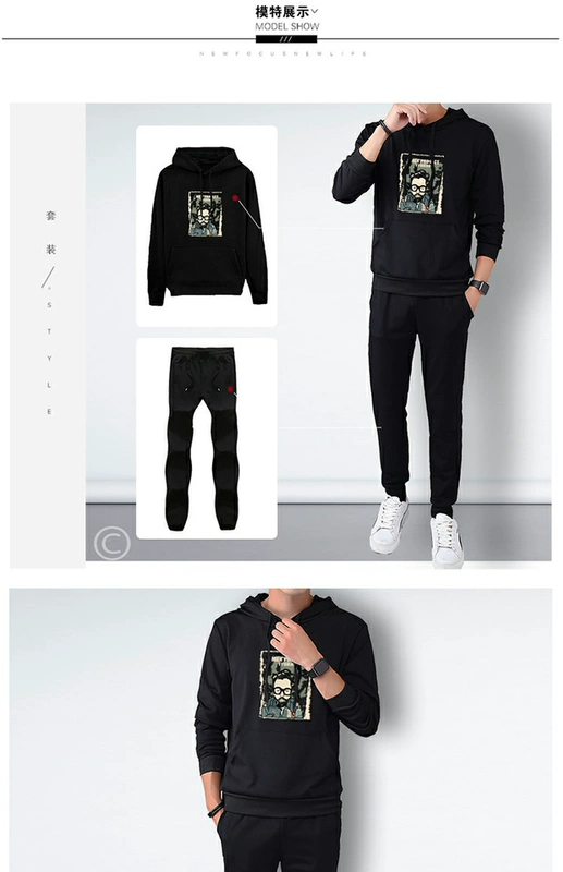 Áo len Wei quần phù hợp với nam trùm đầu trùm đầu mùa đông nam thể thao và giải trí cộng với nhung dày trùm đầu hai mảnh hoodie tím Áo len