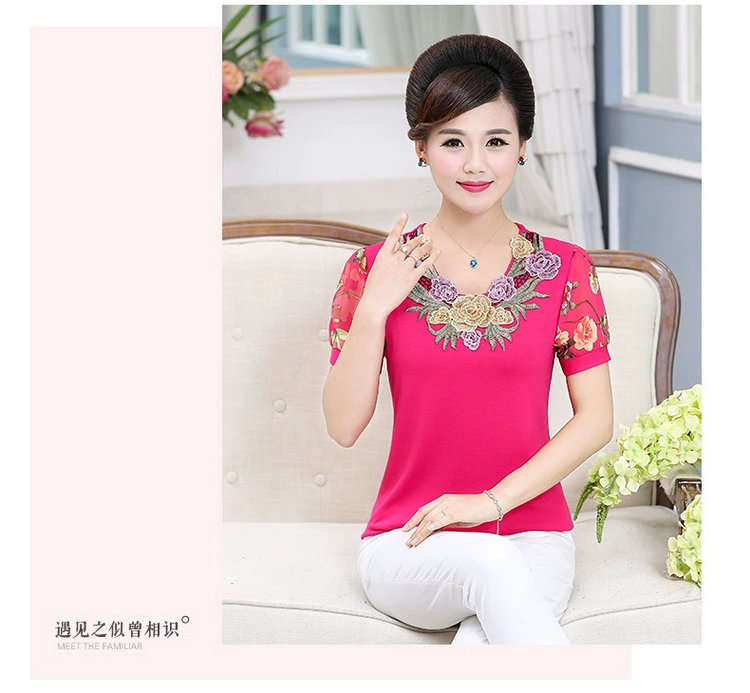 Áo mẹ mùa hè ngắn tay áo thun nữ trung niên tay áo sơ mi trung niên mùa hè áo sơ mi mỏng phần từ bi - Quần áo của mẹ quần áo cho mẹ Quần áo của mẹ