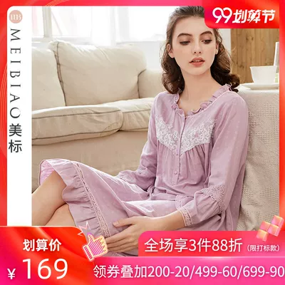 Áo ngủ 9 điểm tiêu chuẩn Mỹ tay áo bằng vải ren nữ mùa hè phiên bản Hàn Quốc của phần ngọt ngào gợi cảm công chúa gió nhà mùa xuân và mùa thu - Đêm đầm váy ấm áp cho mùa đông Đêm đầm
