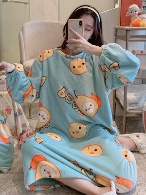 áo ngủ dài tay nữ mùa thu và phần dài mùa đông flannel Pyjama nữ mùa xuân và mùa thu áo khoác ngoài của Hàn Quốc phiên bản của tracksuit nhung san hô chân váy xếp ly ngắn váy đầm