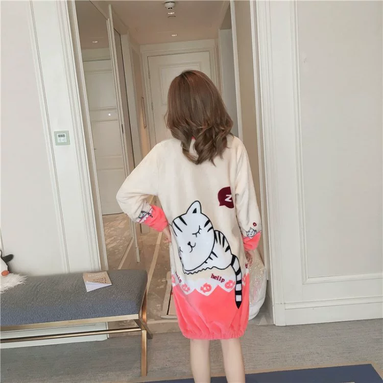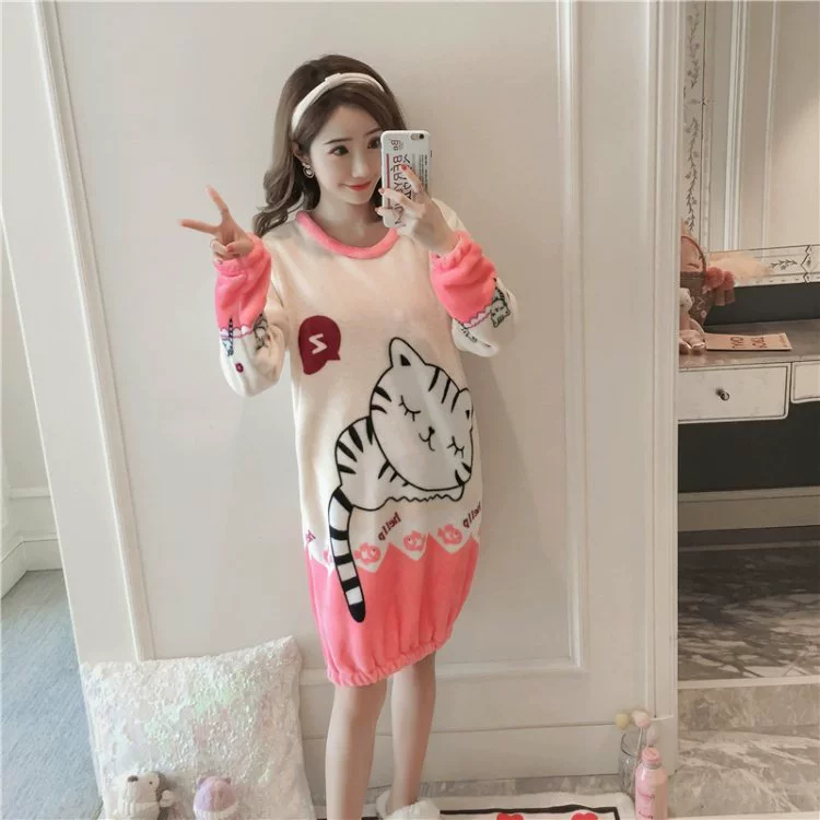 Áo ngủ mùa đông nữ dài lông cừu san hô dày phiên bản Hàn Quốc của mùa thu và mùa đông flannel ngọt ngào dễ thương ấm áp đồ ngủ sinh viên đồ bộ mặc nhà Đêm đầm