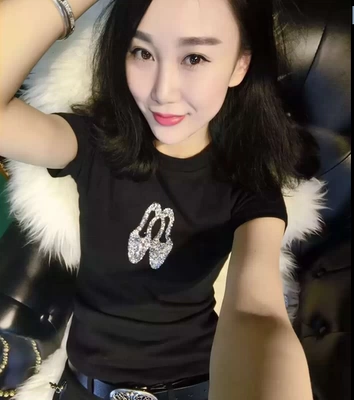 Áo phông châu Âu 2019 xuân hè mới cho nữ Áo cotton mỏng tay ngắn châu Âu thời trang cao gót kim cương áo thun thủy triều - Cộng với kích thước quần áo áo gió nữ Cộng với kích thước quần áo