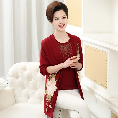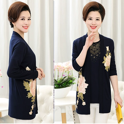 Áo phông nữ trung niên mùa xuân và mùa hè Áo thun hai dây dài tay dệt kim - Quần áo của mẹ áo khoác cho mẹ 40 tuổi Quần áo của mẹ