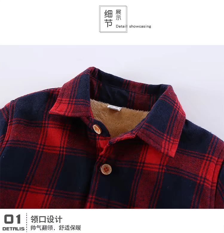 Áo sơ mi bé trai tay dài cộng với nhung 2018 cho bé mùa thu đông mới bé sơ mi kẻ sọc dày quần áo trẻ em thủy triều shop quần áo trẻ em đẹp Áo sơ mi