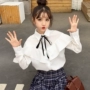 Áo sơ mi cộc tay mới thu đông phong cách Hồng Kông phiên bản Hàn Quốc của thiết kế cho thấy chiếc áo choàng có tay màu rắn màu áo nữ áo sơ mi nữ dài tay màu đen Áo sơ mi dài tay