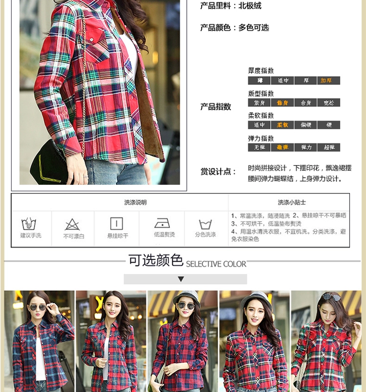 Áo sơ mi cotton cộng với kẻ sọc dày nhung nữ tay dài ấm áp mùa thu đông Các phiên bản Hàn Quốc của áo khoác nữ rộng cỡ rộng các kiểu áo sơ mi đẹp Áo sơ mi