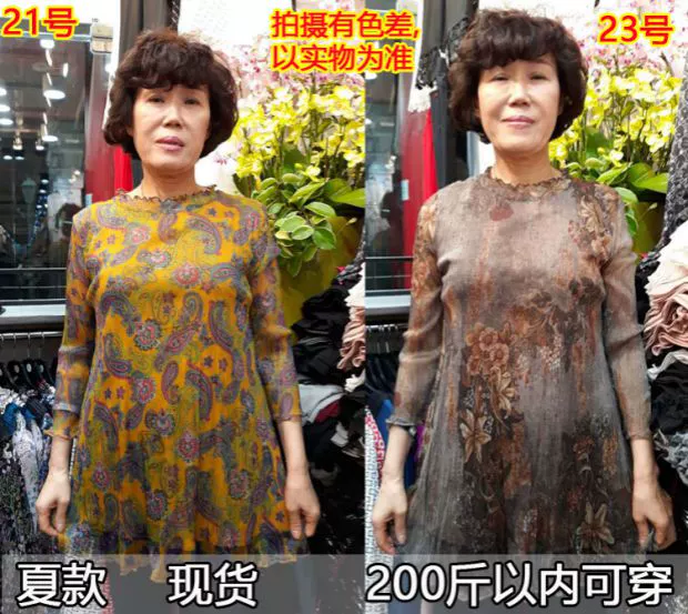 Áo sơ mi mẹ mùa hè mới của Hàn Quốc Dongdaemun cổ tròn co giãn cao cho phụ nữ size lớn cộng với phân bón 200 kg có thể mặc màu bị hỏng - Quần áo của mẹ đầm xòe tuổi trung niên