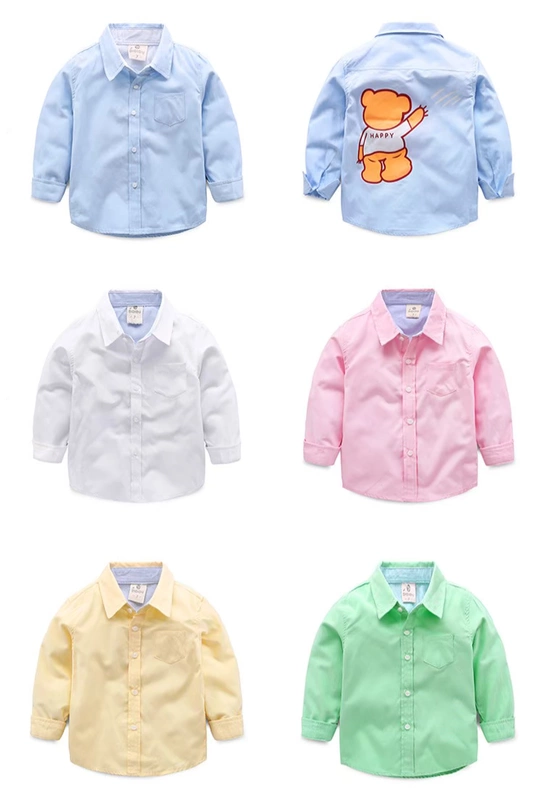Áo sơ mi nam tay dài 2018 Mới cho trẻ em Mặc đồ mùa thu cho bé Áo cotton hàng đầu cho bé Áo sơ mi màu tinh khiết shop quần áo trẻ em Áo sơ mi