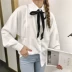 Áo sơ mi nữ mùa thu sang trọng phiên bản Hàn Quốc in nơ ngọt ngào thắt nơ áo dài tay áo sơ mi trắng 	áo sơ mi nữ dài tay cá tính