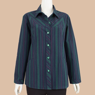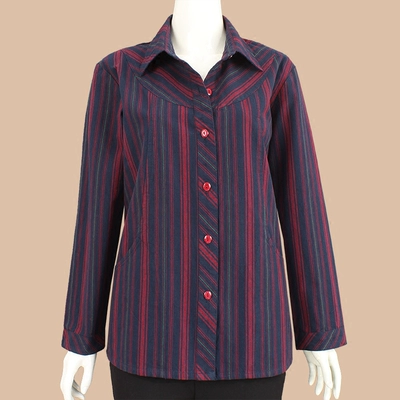 Áo sơ mi nữ sọc cotton mới 2018 nữ trung niên xòe dài và mập mạp tay dài xuân hè - Quần áo của mẹ áo sơ mi nữ trung niên Quần áo của mẹ