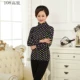 Áo sơ mi nữ tay dài trung thu mùa thu cho mẹ với áo cotton nửa cổ cao màu trơn áo thun trung tính đơn giản áo kiểu trung niên u50