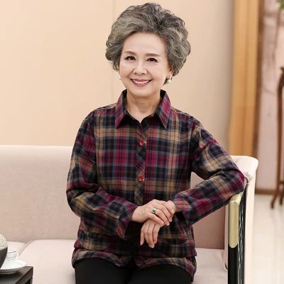 Áo sơ mi nữ trung niên xuân hè mới tay dài T 桖 áo mẹ cotton kẻ sọc cotton tăng chất béo áo vest nữ