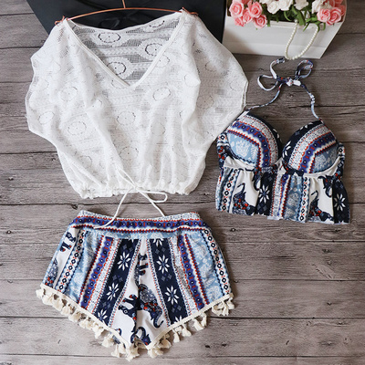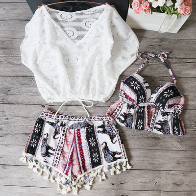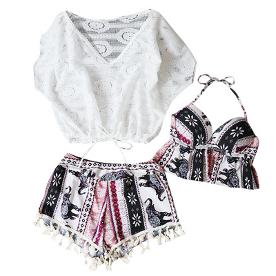 Áo tắm nữ bảo thủ chia tam giác bikini bốn mảnh suối nước nóng nhỏ bằng thép tấm thu gom bộ đồ bơi che bụng - Bikinis đồ bơi nữ dạng quần cạp cao Bikinis