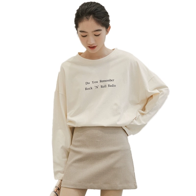 Áo thun dài tay nữ 2019 mới dậy sóng quần áo thu đông học sinh trung học cơ sở Hàn Quốc áo sơ mi hở hang - Áo phông áo phông dài tay Áo phông