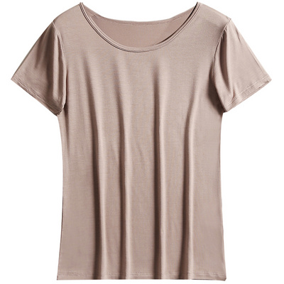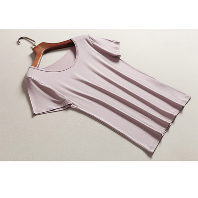 Áo thun nữ mùa hè ngắn tay Modal màu nửa rắn nửa vòng cổ chạm đáy áo sơ mi lỏng lẻo phục vụ đồ ngủ mặc đồ ngủ - Pyjama đồ lót nữ Pyjama