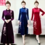 Áo voan nữ dài tay 2018 thu đông mới đứng cổ áo rộng cộng với áo nhung rộng kích thước tay áo lồng đáy áo thủy triều áo khoác nữ trung niên