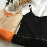 Áo yếm hai mặt cộng với nhung cho nữ trong mùa đông ấm áp và chống lạnh ngắn chuyên nghiệp mặc áo sơ mi ren hoang dã áo khoác jean nữ Áo ba lỗ