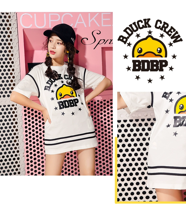 B.Duck nhỏ màu vàng vịt nữ 2019 hè mới thời trang mới in áo thun ngắn tay áo sơ mi rộng đáy áo - Áo phông áo phông nữ rộng Áo phông