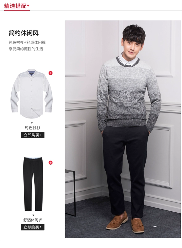 Baleno Benny Road Mùa Thu Cotton Dài Tay Áo Gradient Màu Áo Len Thời Trang Tương Phản Áo Len Nam Vòng Cổ Thủy Triều áo len Áo len